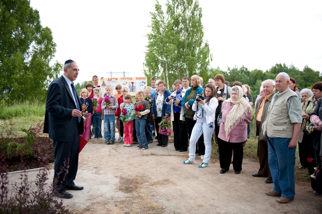 Сегодня мы собрались с вами, чтобы почтить память сотен дочерей и сыновей еврейского народа, жизнь которых трагически оборвалась. Они были расстреляны или заживо погребены здесь - в деревне Жестяная Горка. Эти люди не погибли на войне, они не были в бою, они не держали в руках оружие. Они были убиты только за то, что были евреями.